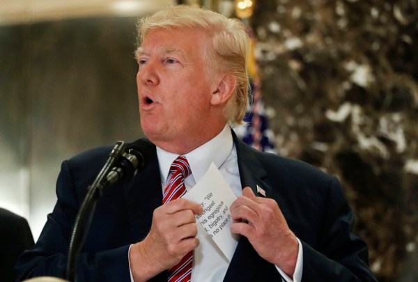 “As Trump addressed journalists on Jan. 11 in the lobby of Trump Tower, he came as close as he ever would to grudging acceptance. “As far as hacking, I think it was Russia,” he said, adding that “we also get hacked by other countries and other people.”