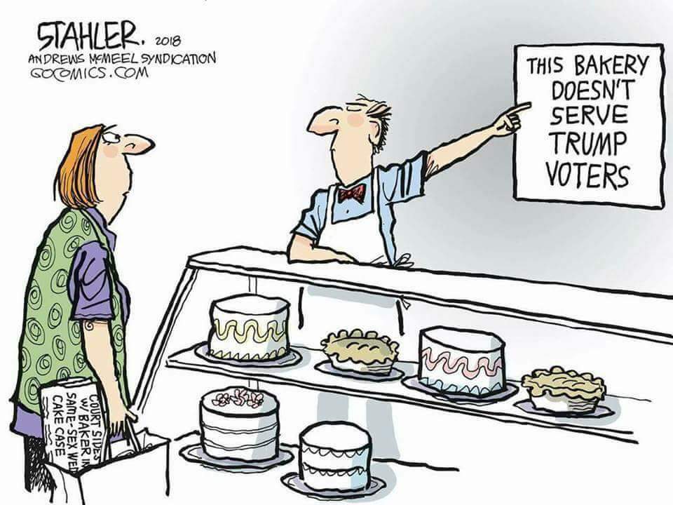 I guess this means a Catholic baker could refuse to make a cake for a Jew, and a Jew could refuse to make one for a Muslim and they could all refuse to make one for an atheist. And a gay baker could refuse to make one for straight people.