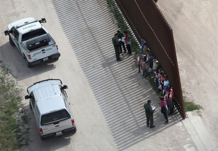 MCALLEN, TX – FEBRUARY 21: U.S. Border Patrol agents question undocumented immigrants at the U.S.-Mexico border. A group of men, women and children from Central America were picked up after crossing the Rio Grande, Texas, seeking asylum in the US (Photo by John Moore/Getty Images)