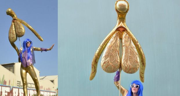 The Glitoris – a gold, 100:1 scale model of a clitoris by artist Alli Sebastian Wolf to raise awareness of female sexuality. Photographs: Alli Sebastian WolfLink to entire article: The Still-Misunderstood Shape of the Clitoris – The Atlantic