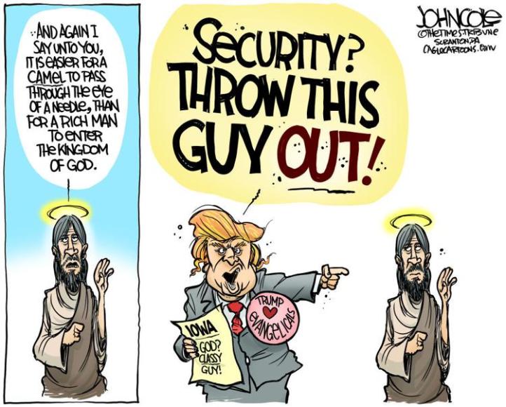 So, when I hear people idolize Trump saying he is a gift from God, I must confess to reading a much different bible than they do. Per the cartoons above, Jesus was not a bully, he did not lie, he did not treat women and others poorly, and he spoke up for the disenfranchised. Keith