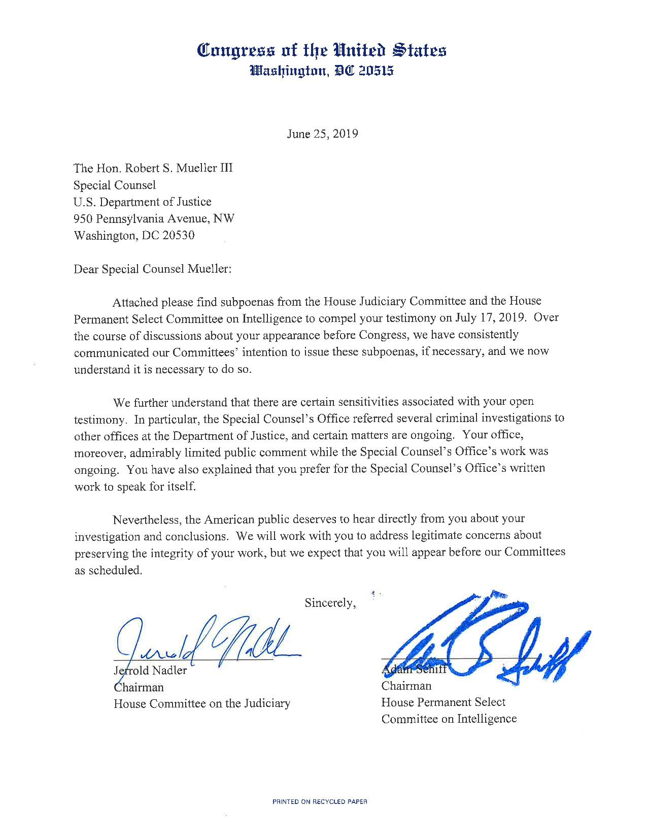 Having the former FBI Director of 12 years and the current FBI Special Counsel Mueller testify before the House Judiciary Committee chaired by Rep. Jerry Nadler, on the 17th of July 2019, is a constructive initial step to educate the public as to why there should be an impeachment inquiry against President Trump. This is true even if Mr. Mueller confines his testimony to whats contained in his report.