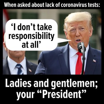 Gronda, stupid question. If Trump wants to look presidential, why did he forego alerting us to the risk of COVID-19 back in January? That would have been leadership and won him kudos. Yet, when he could have told the truth forewarning us, he reverted to form to lie and downplay the risk. This is beyond poor stewardship. The truth seems to get lost in most Trump calculations.