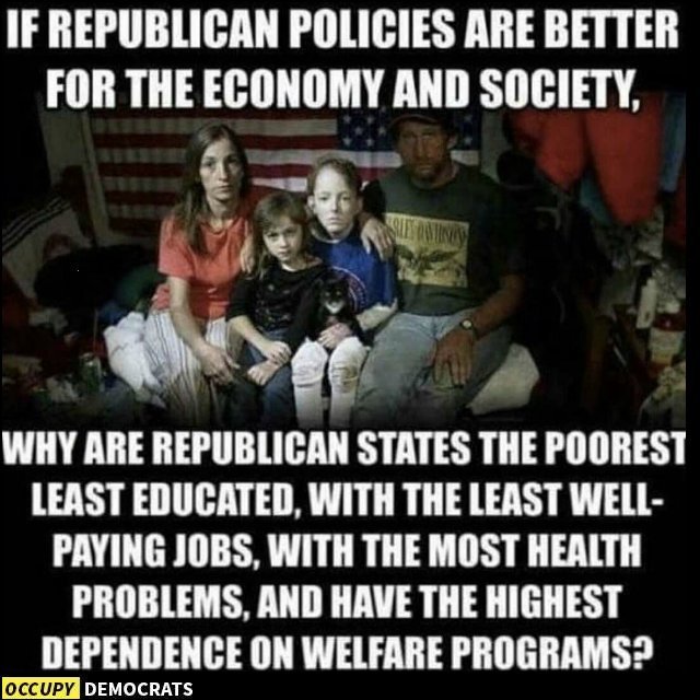 I know you asked long ago that I not comment on your blog, Gronda, but I feel it necessary to point out MAGAts do not care about what happens to them. They think they have little to lose already, so what if they lose a bit more. But owning the libs is all they care about, and that is what the Repugh Party lets them think they are doing.
