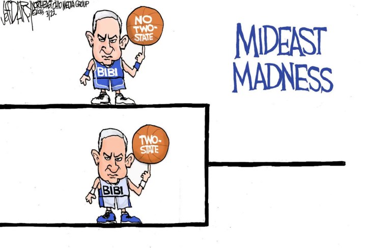 Soon after, there were multiple news reports about the first phone call in weeks between the Israeli prime minister and the US president, where the Israeli leader seemed to backtrack on his claim that he’d never consider a two-state solution for Israel and Palestine before he doubled down again. Translation: He wants U.S. monies while he continues to give the finger to the U.S. president.