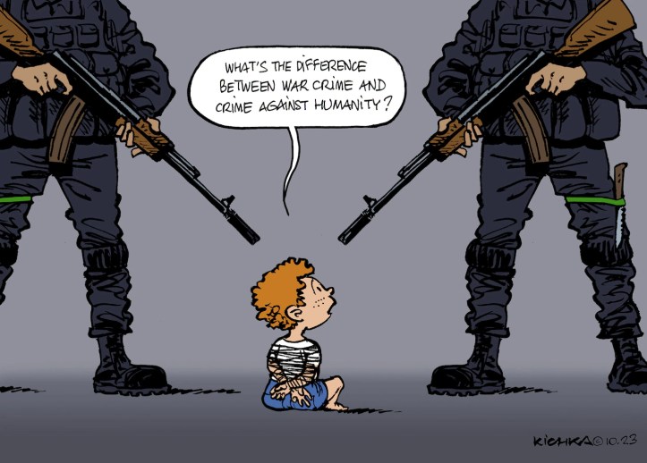 In my opinion, Hamas, the Iranian backed terrorist governing group of Palestinians in Gaza, which led a savage attack against Israelis on October 7, 2023, brutally killing about 1,200 and taking 240 as hostages, are also guilty of committing “crimes against humanity” or “war crimes” as defined under international law.