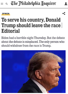 (The GOP MAGA ex-president) “responded to the calling out of his own criminal convictions by saying that Biden “could be a convicted felon,” and falsely stating: “This man is a criminal.” And, repeatedly, Trump called America a “failing nation” and described it as a hellscape.”